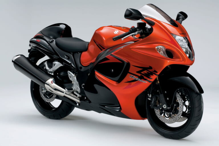 モチーフは写真の2008年型 Hayabusa1300(GSX1300R)のオレンジ×ブラックと思われる。2代目として登場したこのマシンは、排気量を1299cc→1340ccにアップし、SDMSやチタンバルブなどで戦闘力と扱いやすさを向上した。