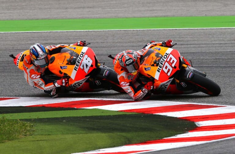 2013年からチームメイトになった#93マルケス、#26ペドロサ。
