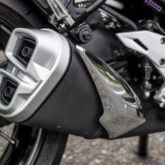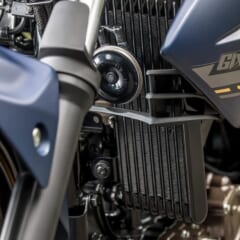 【3万3000円アップもお買い得感は不変だ】太めのフォークやワイドなタイヤ、大型のショートマフラーなど、市街地で映える車格を目指してデザインされたジクサー250。ダイヤモンドフレームはジクサー150のレイアウトを踏襲しつつ250専用に設計したものだ。車両価格はフルカウルのジクサーSF250とも前年から3万3000円高に抑えられる。