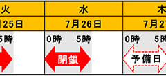 NEXCO東日本京浜管理事務所(神奈川県横浜市)では、E83横浜新道下り線星川インターチェンジ(以下「IC」)の入口ランプにて舗装補修工事、逆走対策工事を行うため夜間閉鎖を実施すると発表した。 目次 1 工事概要2 迂回路 工事概要 横浜新道下り線星川ICの入口ランプにおいて、路面の損傷が発生しているため舗装補修工事、高速道路の逆走を防止するための逆走対策工事(路面標示、カラー舗装)が実施される。 […]