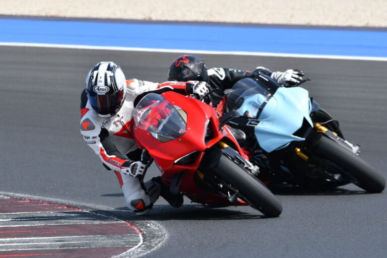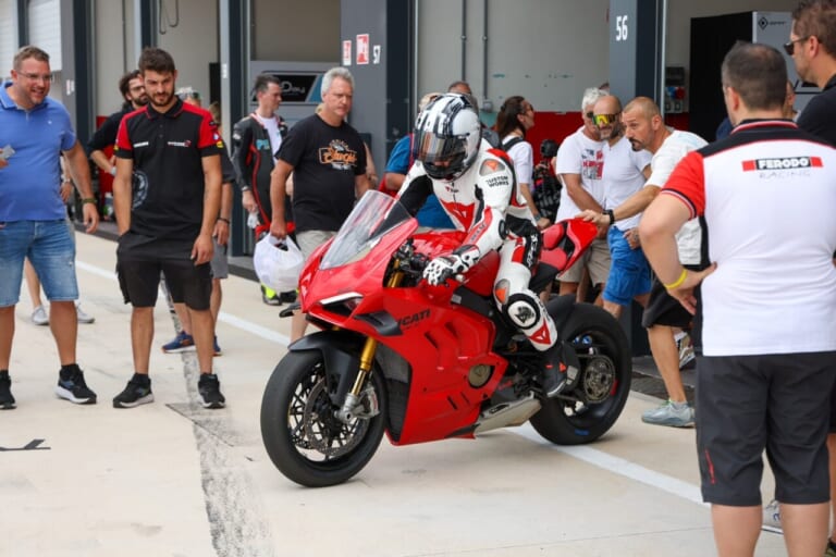 それに対してノーマル車両の我々は、ロリスが1分38秒台、ホルヘが1分39秒台で、ほぼ現役のピッロとバリバリ現役のカネパは1分36秒台! タイヤこそスリックでしたが、皆さんが購入するのと同じノーマル状態の車両、しかも気温38℃のサーキット走行会でのこのタイムは、とんでもなく速いことが分かると思います。