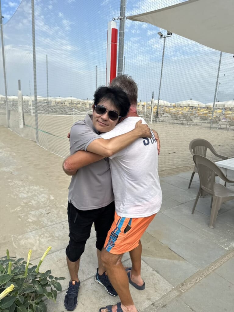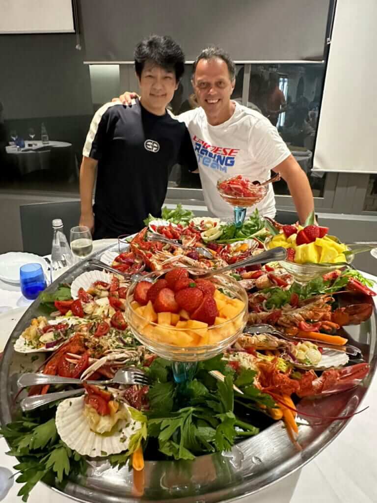 イベントの帰りは、キリさんの家に寄りました(註:ピエールフランチェスコ・キリ。世界GPで活躍。原田さんが世界チャンピオンになった’93年のチームメイト。ルーキーだった原田さんの才能をすぐに見抜き、献身的にサポートした)。ひとしきり話をして「じゃ、そろそろ」と帰ろうとすると、「晩飯食って行けよ」とのことで、結局ご馳走に。いい時間になりました。