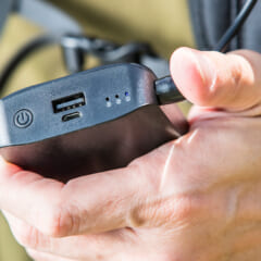 【ウィンドコアアイスマン水冷服】●価格:1万6800円 ●ポンプ出力:7.4V150mA(最大) ●バッテリー稼働時間:約7〜25時間(モードにより異なる) ●サイズ:F(胸囲80〜130cmに対応) ●付属品:リチウムイオンバッテリー(3350mAh)/充電ケーブル/取扱説明書