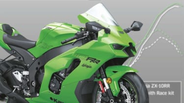 KRTエディションは、2023年モデルと基本的に同グラフィックを採用しながら、タンクロゴがリバーマーク+KRTロゴだったものから『Kawasaki Racing Team』に変わった。新色のブラックは、質感の異なる黒を組み合わせた『メタリックフラットスパークブラック×エボニー』だ。ちなみに、レーシングホモロゲーションモデルのニンジャZX-10RRについては6月に2024年モデルが発表済み。こちらもカラーリングは前年を踏襲しながら、燃料タンクのロゴが変更されている。
