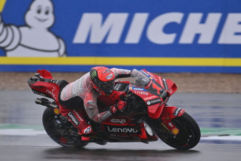 MotoGP第9戦イギリスGPは、ブリティッシュウェザーに悩まされる展開となった。8月4日(金)は気温が低すぎてワケも分からないまま転倒するライダーが続出し、翌5日(土)は土砂降り。そして決勝の6日(日)は決勝レース中盤に差しかかるとコースの一部で雨が降り、レース中にマシンを乗り換えられる「フラッグ・トゥ・フラッグ」が宣言され、レース終盤にはレインタイヤに交換したライダーも何人かいた。