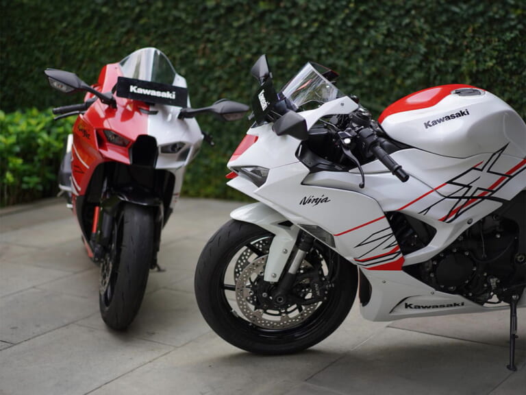 弟分にあたるニンジャZX-6Rは、2024年モデル(日本では未発表)で同じくエアロダイナミクスを向上したフェアリングやTFTメーターを採用した、ミドルクラスのスーパースポーツだ。ライバル勢にはない636ccという排気量を持ち、レースレギュレーションから離れることで公道の使いやすさを追求している。