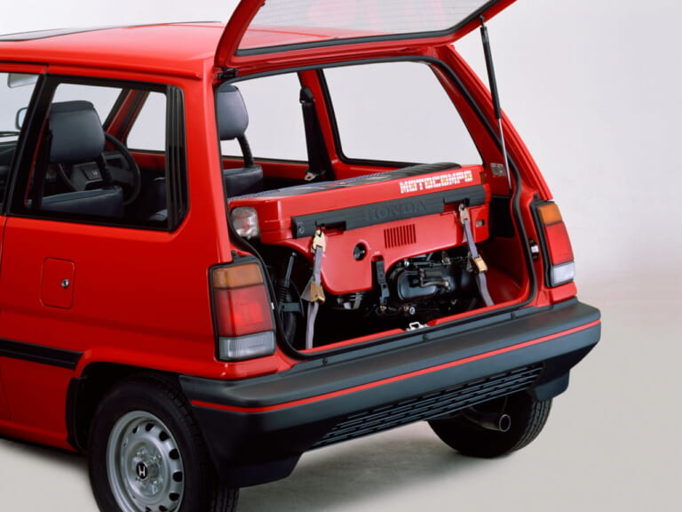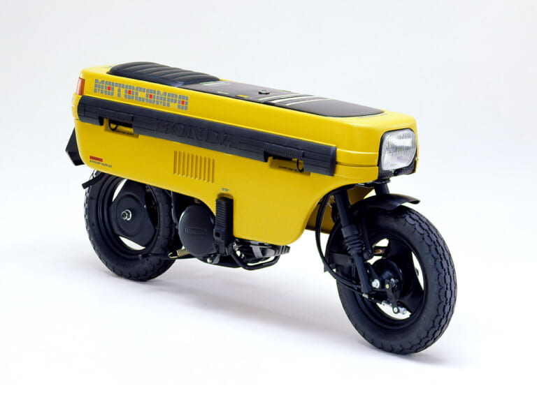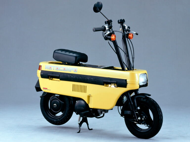 モトコンポは、1981年11月11日に発売されたFFニューコンセプトカー、乗用車「ホンダ シティ」および商用車「ホンダ シティプロ」と同時発売されたミニバイクで、シティ搭載用として同時開発されたもの。ホンダはこれをトランクバイクと名付けていて、四輪と二輪で六輪ライフを打ち出したものでした。