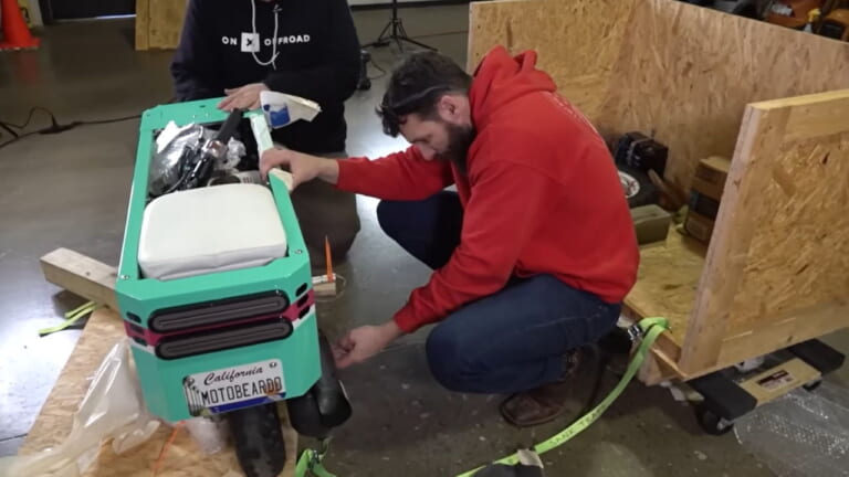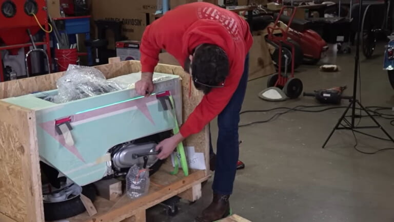 アメリカの人気YouTubeチャンネル『Bikes and Beards』に木箱が届きました。これまでにも40年以上前のホンダFT500やSR500(どっちも新車!)、Amazonで買った激安中華バイクなんかの箱開けをしてきた同チャンネルですが、今度ばかりは勝手が違う模様です。