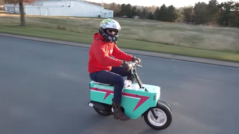 アメリカの人気YouTubeチャンネル『Bikes and Beards』が視聴者からバイクをプレゼントされたそうです。その姿は手作り感あふれるモトコンポ。……って、ちょっと大きすぎないですか??