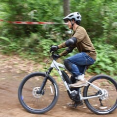 剛性感の高いボディとしなやかな前後サスペンションで凹凸路も難なくいなす。高性能だが扱いやすく、e-MTBビギナーでも周回ごとにコースの通過速度が上がっていくのが分かった。