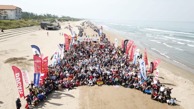 砂浜をバイクや車で走れるという稀有な存在の「千里浜なぎさドライブウェイ」は、20年以上前から浸食などによる砂浜の減少が深刻になっていて、風や波の強い日は通行禁止になる事態も生じています。そこで石川県と羽咋市が「一人一砂運動」をいう砂浜を維持、復活する運動を行っていて、風間さんもSSTRに参加するライダーたちに協力を求めています。