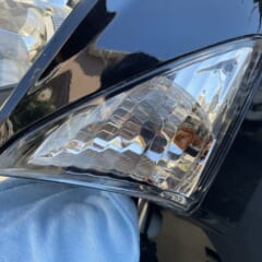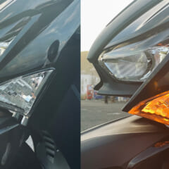 左が純正のハロゲン球(オレンジ色に着色されている)で、右がLED球に交換後の姿。純正球だとクリアレンズ越しにオレンジ色が見えるが、LEDにするとそれが目立たなくなってルックス向上!