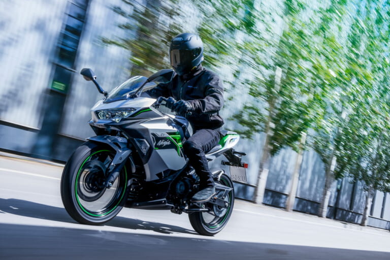 フレーム、サスペンション、ブレーキは400ccクラスをベースにしたとしており、48psを発揮するニンジャ400/Z400とほぼ同等のディメンションに27kg~31kgも軽い車重が与えられた。モーターはエンジンに比べてジャイロモーメントが小さいことが予想されるため、ハンドリングはかなり機敏なものになりそうだ。