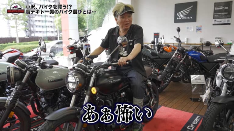 安全運転のオザワさんはGB350かGB350Sに目星をつけていたようで、またがりもしないで買おうとしますが、それをハンバーグ師匠が「またがれよ早く!」と背中を押します。