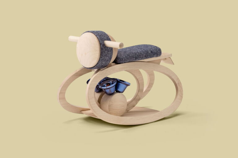 世界最大規模のデザインイベント「ミラノデザインウィーク2023」にヤマハ(楽器のほう)が出展した“You Are Here”展から、My First Yamahaの象徴として、子どもにとって初めての乗りものとなり、楽器ともなる「木馬」を出展。