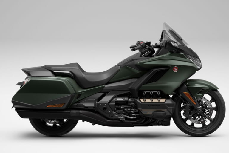 ホンダが欧州でゴールドウイングシリーズの2024年モデルを発表。バガー仕様のスタンダードモデル「ゴールドウイング」はマットアーマードグリーンメタリック(エンジンケースにブラウンのディテール)を新採用、フル装備の「ゴールドウイングツアー」はヘビーグレーメタリック×グラファイトブラック(エンジンカバーにブロンズのディテール)が追加された。ツアーのパールグレアホワイトは、基本色を継承しながらグラファイトブラックのディテールが施されている。なお、ベータシルバーメタリック×イリジウムグレーメタリックは継続だ。