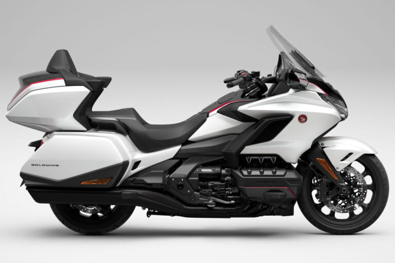 ホンダのフラッグシップモデルであるゴールドウイングシリーズは、1975年に999ccのネイキッドモデルとしてGL1000ゴールドウイングが初登場。この時は水平対向4気筒エンジンを搭載しており、1980年には2代目で排気量を1085ccとしたGL1100に。翌年に現在に通じる大型カウルを備えた大陸ツアラーのコンセプトを具現化したインターステートへと進化し、さらに1182ccのGL1200へ。そして1988年に6気筒のGL1500ゴールドウイングにフルモデルチェンジし、2001年に13年越しのフルモデルチェンジを行いGL1800となった。