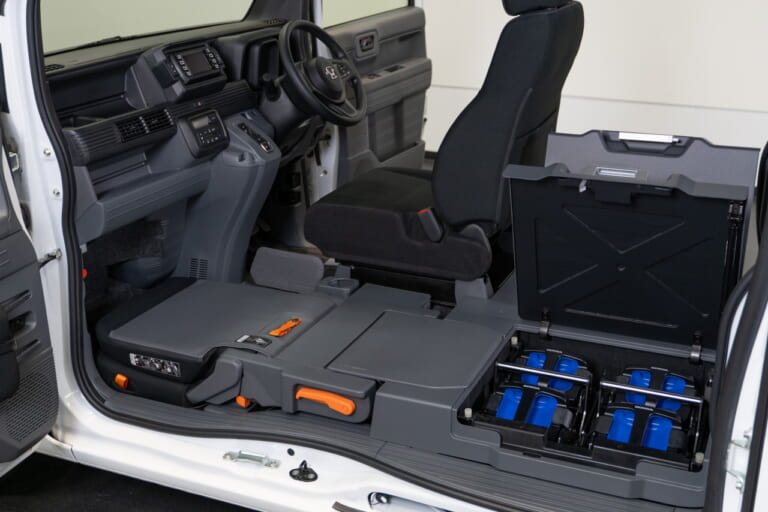 MEV-VANコンセプトは、このMPP e: を後部の床下に8個搭載することができる仕様になっており、短距離で繰り返し走ることが想定される集配業務にも最適なソリューションなのではと思える。すでにホンダとヤマト運輸は、2023年6月からN-VAN e: の実用性を検証してきだが、MEV-VANコンセプトでは充電による待機時間や、夜間の一斉充電による電力使用ピークの偏りといった課題に対して交換式バッテリーがどの程度有用かが試されることになる。
