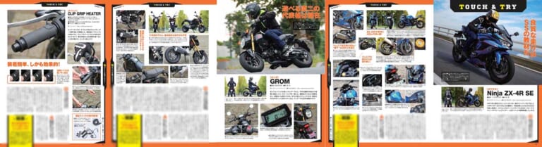 タッチ&トライのコーナーでは、車両テストだけでなくパーツや用品もテスト! 今回は下記の試乗/試用インプレッションをお届けします。今回テストしたのは下記。