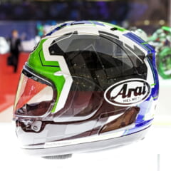 カワサキは、ジャパンモビリティショー2023にニンジャZX-4RRやニンジャZX-10Rの“Ninja”40周年記念モデルを展示。これにともない、同イメージの白×青×緑の3カラーに塗られたフルフェイスヘルメット「Arai RX-7X」を展示した。すでにカワサキプラザの公式ホームページに掲載されており、11月より順次納品していうという。 目次 1 40周年記念モデルに乗るなら、ヘルメットも合わせたい […]