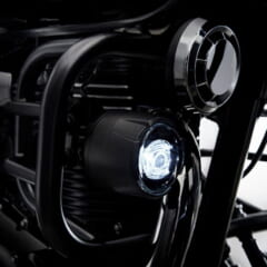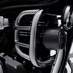 シリンダー横あたりにマウントできるエンジンガード。これを利用してフォグランプも装備可能だ。