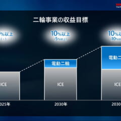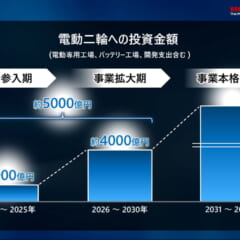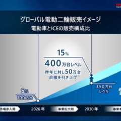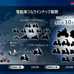 グローバルでは2030年に電動二輪車を全体の15%とする。これに向けて600~700ccクラスの出力となる大型スポーツバイクも含め30モデル以上を投入していくとした。