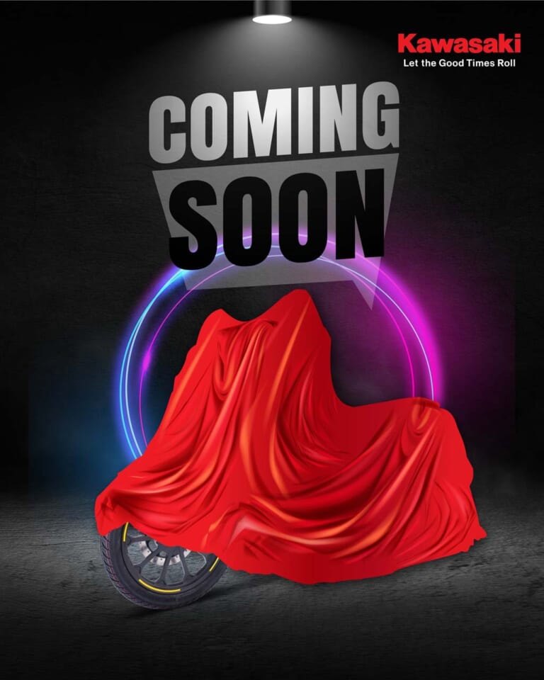 カワサキインディアがSNSでティーザーを開始した。11月29日に公開された一葉の写真では、真紅のバイクカバーに包まれたバイクのフロントホイールのみがチラ見せされ、キャストホイールであることと、タイヤサイズは80/100-17であることだけがわかった。