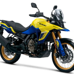 |白×青紫にゴールドホイール! スズキ「Vストローム800DE」のニューカラーが登場【北米】