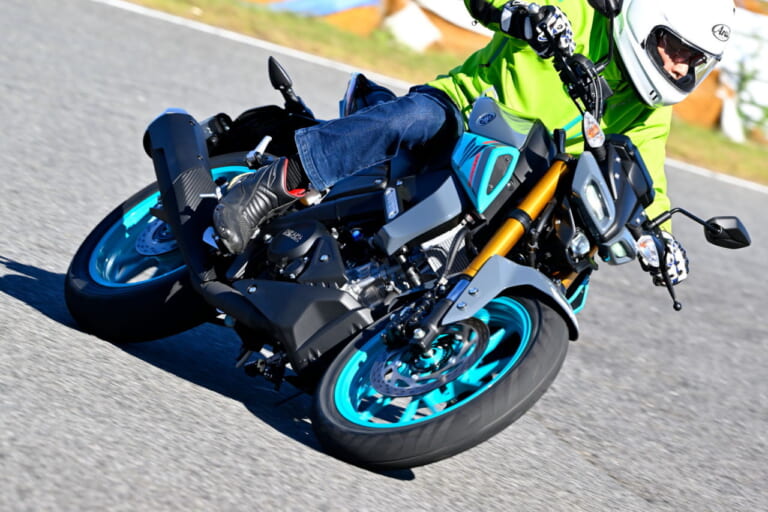 走り出してみると、ハンドルバーが手前に寄せられているぶん、小回りの良さでは3機種中で一番となっていた。XSRのようにリーンウィズでマシンと一緒に身体を寝かすよりもMT-125は腰の下でマシンを右へ左へと積極的に振り回すようなロデオチックな乗り方が得意。このあたり、まさにMT-09が見せたライディングスタイルそのままとなっている。