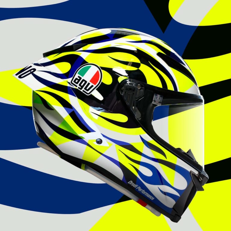 そんなロッシが2023年のGTワールドチャレンジ・ヨーロッパ参戦で愛用していたヘルメットのグラフィックをあしらったニューモデルが『PISTA GP RR Limited Edition SOLELUNA 2023』だ。ソレルナとは、太陽と月を意味するイタリア語で、ロッシが現役時代に愛用していたグラフィックの名称であり、ロッシを象徴する大切なグラフィックでもある。