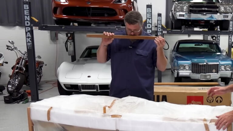 最終的には販売店が開梱して車両を組み立て、走れる状態に整備してユーザーに引き渡されるわけだが、彼らが見つけてきたSR500は当時のままの箱に入っていて、開封した形跡なし。つまり、日本から米国へと海を渡ってきたものの販売には至らず、そのままの状態で眠っていたわけだ。