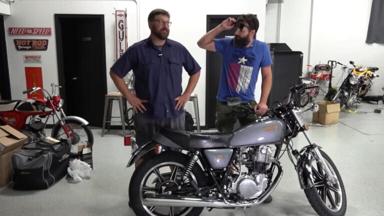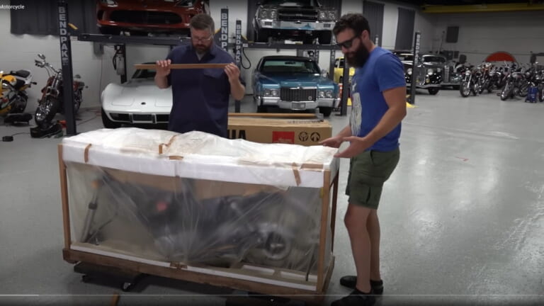 41年も箱入り(動画公開時)になっていた新車のヤマハSR500を買ってきたのは、人気YouTubeチャンネル『Bikes and Beards』。単なる箱入りじゃない、完全未開封だ。