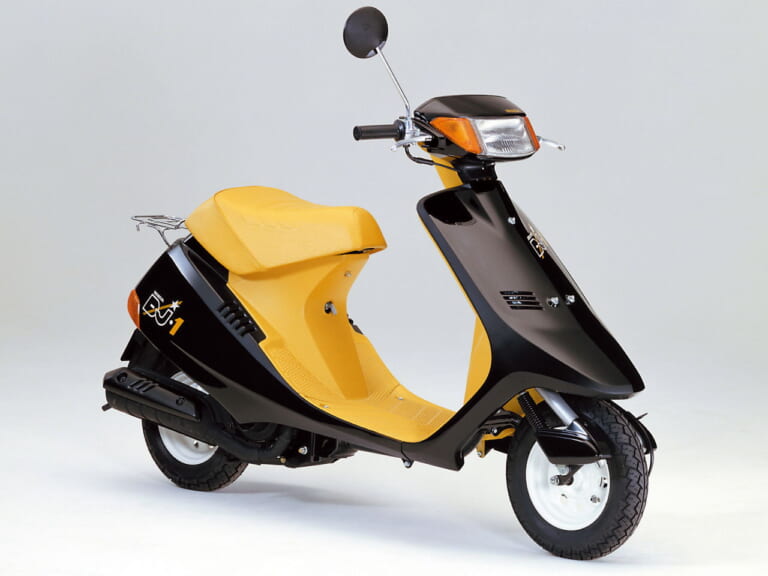 ジョグ登場から2年後、ライバルの打倒を目指してホンダが投入した意欲作。前輪を覆う大型のフロントカバーやウインカー一体型のヘッドライトなど、洗練されたデザインが特徴だ。さらに出力もジョグを上回る5.2psを発揮。前後タイヤもワンサイズ大きく、安定感に優れていた。車名は「打倒ジョグ1号機」が由来との噂も!