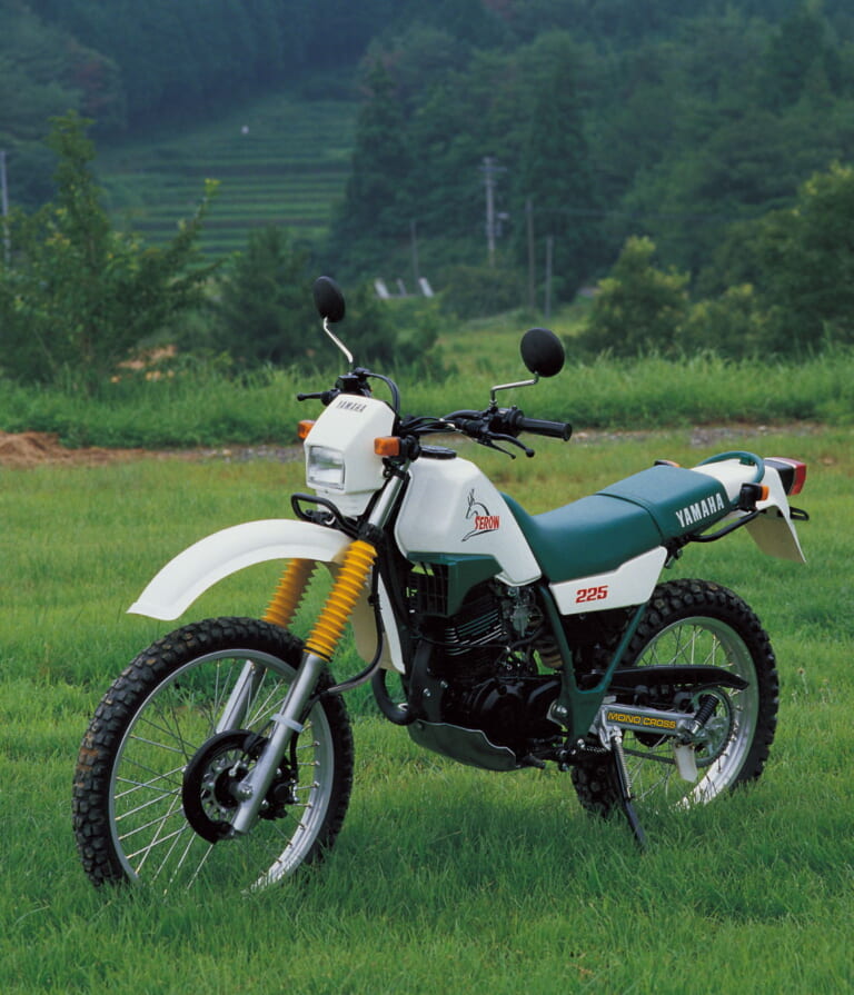 ’80年代中盤、オフロードでも高性能化が進む中、大自然を満喫できる走破性を狙ってリリース。エンジンはXT200の196cc単気筒をベースに223ccまで拡大。これは物理的な限界に加え、バランスを追求した結果、生まれた排気量だ。左右51度の大きなハンドル切れ角や良好な足着き性が好評で、都会のライダーからも人気を得た。