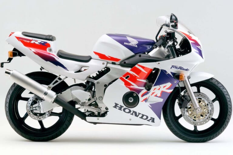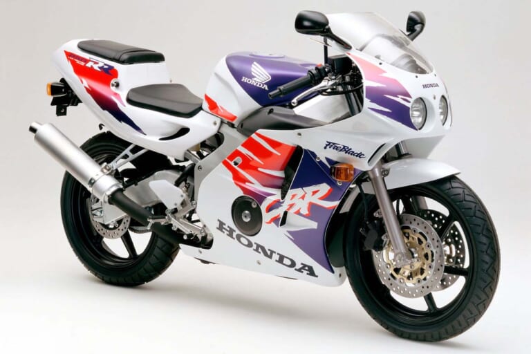 それにしても、今見ても当時のCBR250RRは贅沢を極めたつくりですね。数年前に極上オーナー車を試乗させてもらったことがあるんですが、低中回転からトルクがあって高回転域もパワフル。ライトチューンのNSR250Rなら追いすがることも可能と言われたらしいですが、かなり真実味を感じたものでした。
