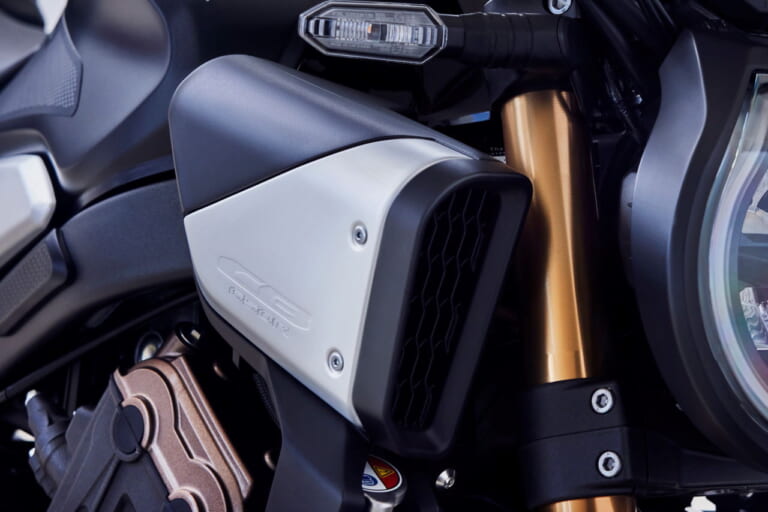 2024年型のCB650R/CBR650Rは、従来型をベースにフェイスリフトを含む外観の変更、そして前述のとおりEクラッチを採用した。これは有段式マニュアルトランスミッションの電子クラッチとしてバイクでは世界初の新機構。従来のレバー操作を伴うマニュアルクラッチ操作から、クラッチレスに早変わりするとともにシステムのON/OFFによって普通のMT車と全く同じ操作感にもなる。