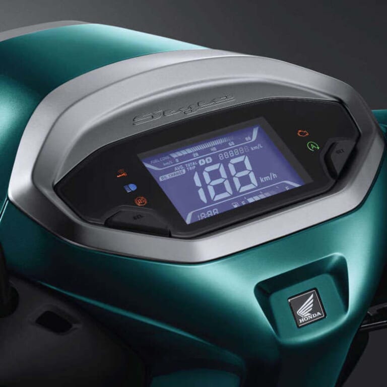 装備は充実しており、上下2段構成のヘッドライトや低い位置に配したポジションライト、ウインカ―、テールランプに至るまで灯火類は全てLEDを採用。USB充電ソケットはタイプAを装備し、ホンダスマートキーや反転表示の液晶デジタルメーター、前後ディスクブレーキ+2チャンネルのABS(廉価なディスク+ドラムのCBSもラインナップ)など現代スクーターの必須装備が一通り揃っている。