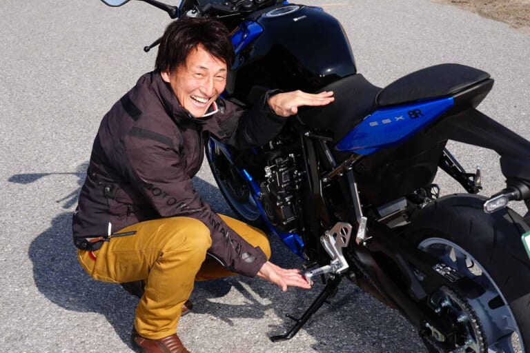 それでも、見た目は「スーパーバイクかと思った」と丸山さんが語るように、GSX-Rの系譜を継ぐような鋭い表情が特徴的だ。クイックシフターやドライブモードセレクターを装備しながらライディングポジションは膝の曲がりが緩やかでとても楽。「ちょっと欲しくなるなあ」と購入意欲をにじませる丸山さんは、このバイクが相当気に入った様子である。