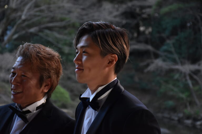 水野涼選手。左が加賀山就臣さん。
