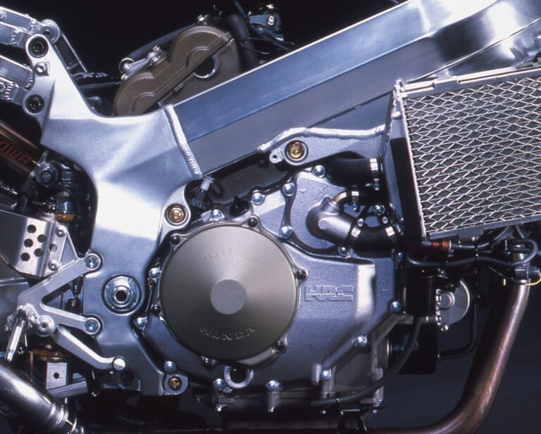 開発はHRCが主導。一般的なカムチェーンのVTR1000Fに対し、SP1/2はカムギアトレーンでエンジンは別物。車体も然りだった。