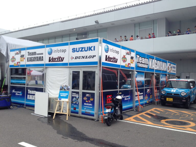 日本のレースに立派なホスピタリィティ・ブースを持ち込んだのも加賀山さんが初めて。応援してくれるスポンサーやファンが休憩したり食事をしたりしながらレースを楽しめるようにとの気遣いからで、この後、各チームともこぞってパドックにブースを設けるようになったそうだ。写真は鈴鹿8耐の際のブース。