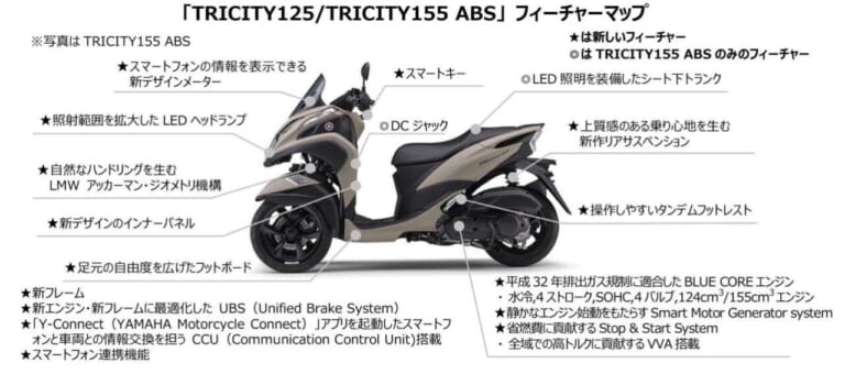 | 車名 | TRICITY155 ABS | TRICITY125 |