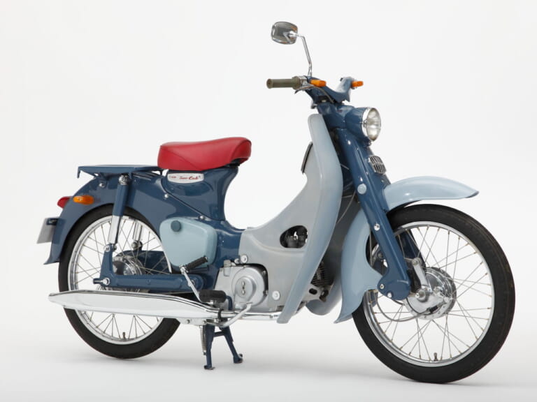 1958年発売の初代スーパーカブことスーパーカブC100。排気量は50ccでOHV方式を採用していた。