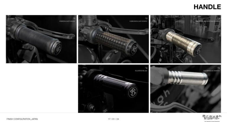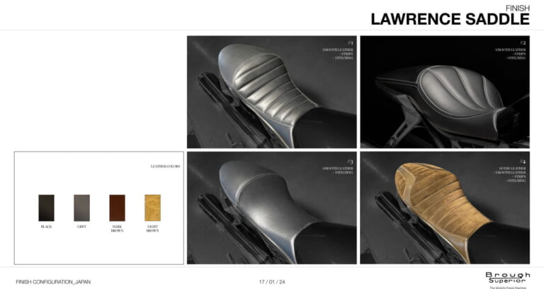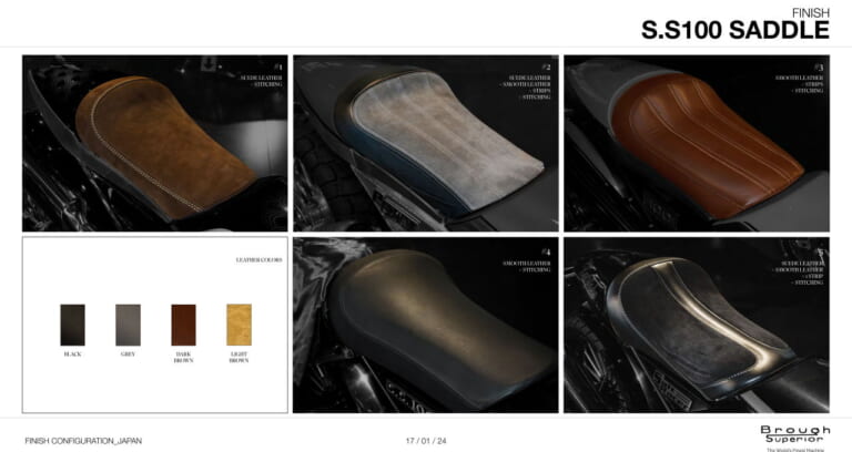 1920年代にアラビアのロレンスのによって伝説的な地位を獲得したのがスーパースポーツ100ことSS100だ。ブラフスーペリアを象徴するモデルであり、フランスのワークショップで手作りかつカスタムビルドされる。公道走行可能な日本仕様は8万9000ドルで、写真のようにジャパンエディションのロゴがあしらわれる。シリアルナンバーを見る限りでは、10台が製作されるようだ。