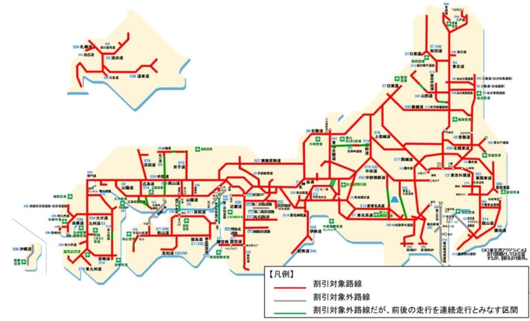 とくに、たかが20km必要距離が減っただけですが、実際に高速道路図を見るといままでは適用されなかった場所・エリアに行く際に定率割引を利用することができるようになりました。