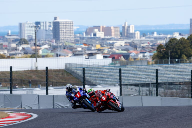 「セーフティーカーが入った時点で“負けた”と思いました。悔しいですが、そこで後ろにいた自分がいけなかったです。ただ、限られた時間の中で、もちろん勝ちを狙っていましたが、実際にトップに立ってレースを引っ張ることになるとは想定していませんでした。まだまだマシンを理解している真っ最中ですし、寒さとグリップの低いコンディションで2分05秒台で走ることができたのは、ドゥカティのポテンシャルをすごい感じるし、本格的にセットアップを始めて2日間しか経っていないのに、10年近く費やしているヤマハファクトリーに、あそこまで戦えたのは上出来だと思います」と水野は笑顔で語った。開幕戦の率直な感想は? と聞くと“悔しいです”とひと言。
