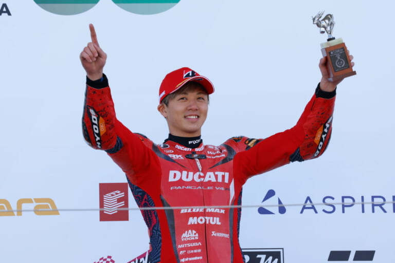 ドゥカティでの初戦で2位表彰台に立った水野。次戦もてぎでは、さらなる活躍が期待される。