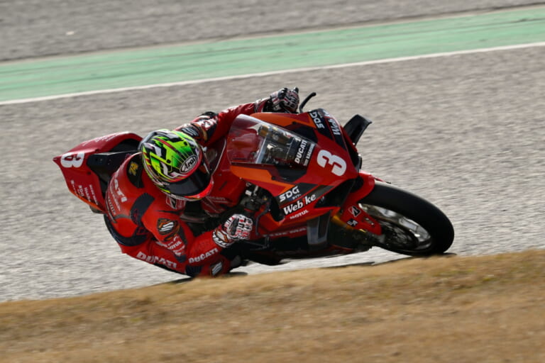 「レース前は3位に入れば100点だと思っていたけれど、今回のようなレース展開だと勝つチャンスはあると思ったね。だから赤旗は悔しかったけれど、2位は100点以上だったと思う。これもファクトリーマシンを貸してくれたドゥカティコルセに感謝。マシンとしてベースが電子制御から車体から、すべてすばらしい。まだまだアジャストできていないので、ノビしろはあるし、まだまだ本来の性能は上にあることが開幕戦を戦ったことで実感できた。新しい風を吹かせていくよ」(加賀山)