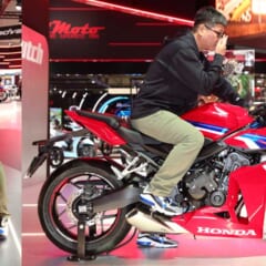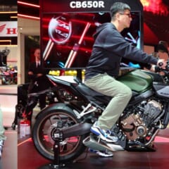 ホンダは大阪モーターサイクルショーで、新開発フレームにCBR1000RR由来の4気筒エンジンを搭載したスポーツネイキッド「CB1000ホーネット」および、電子制御クラッチ搭載の「CBR650R Eクラッチ」「CB650R Eクラッチ」を日本初公開した。 目次 1 192psを発揮したCBR1000RR(SC77)ベースの4気筒エンジンを搭載するCB1000ホーネット2 ミドル直4兄弟が電子制御クラ […]