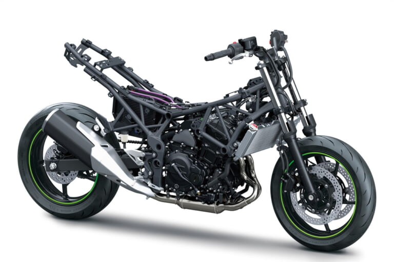 海外仕様のニンジャ500/Z500/エリミネーター500が搭載する451ccエンジン(国内は398cc)をベースに、量産モーターサイクルとして世界初のストロングハイブリッドシステムを組み合わせた「Z7ハイブリッド」が2024年6月15日に発売される。